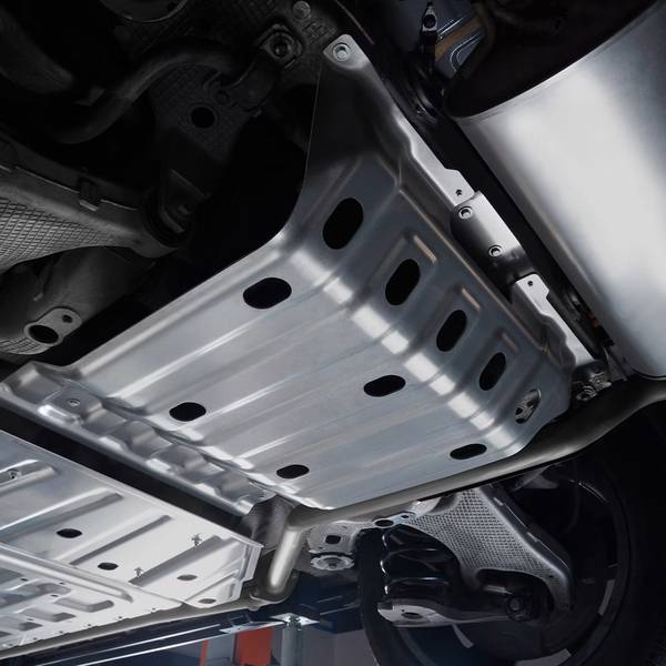 Защита днища ROX выполнена из прочного алюминиево-магниевого сплава и предназначена для защиты нижней части автомобиля. Она предохраняет нижний аккумуляторный блок и топливный бак от царапин, ударов и повреждений при движении по неровным дорогам. Защита берет на себя удары камней и песка, а также снижает влияние агрессивных дорожных условий, включая солено-щелочные покрытия, что особенно актуально при езде по бездорожью.