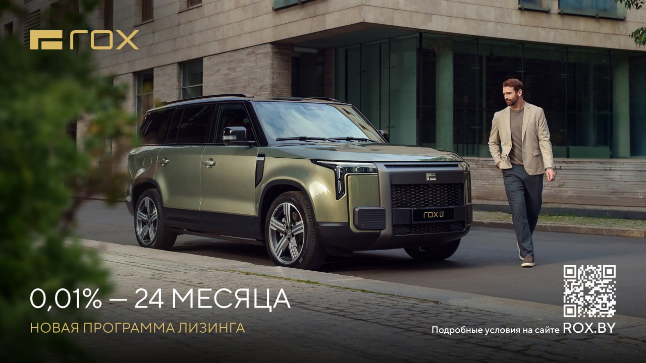 - первоначальный взнос — от 20% стоимости автомобиля (47 000 BYN для ROX 01 Family Edition, 7 мест);